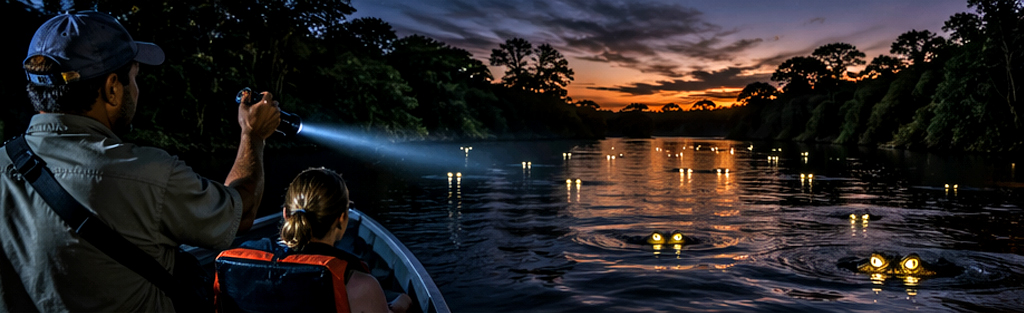 River spotlighting tours on the New River after dark reveal a completely different world from the daytime experience. American Crocodiles—present but cryptic in daylight—become dramatically visible as their eyes reflect spotlighting beams in brilliant orange-red across the water surface. The experience of a river full of crocodile eye-shine is simultaneously exhilarating and primordially impressive. Local guides in Orange Walk arrange these tours; the cost is approximately USD 60–90 per person including transport.