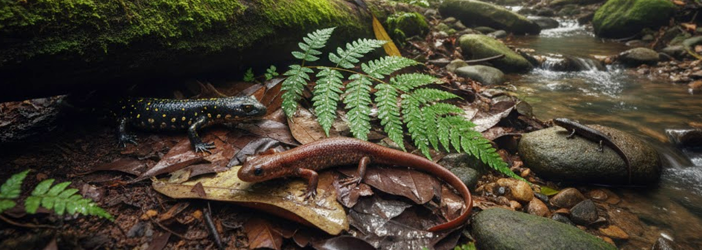 Upland and Mountain Forests – Cooler temperatures and moss-covered surfaces make higher elevations excellent for salamanders, which prefer consistently moist environments.