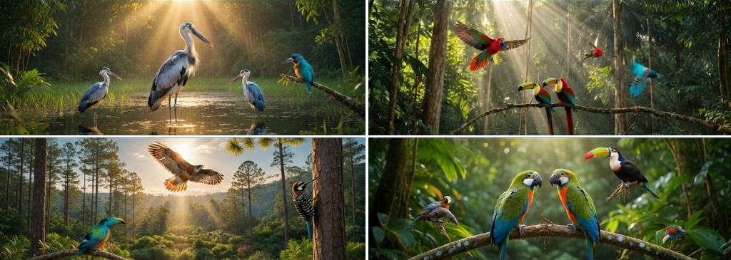 Birding focuses on observing birds in their natural habitats such as forests, wetlands, and rivers. You may see rare migratory species, colorful toucans, and majestic birds of prey.