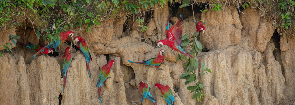 Macaws are most active during these cooler periods, often flying between feeding and roosting areas. Watch treetops, ridgelines, and open forest gaps for colorful flyovers.