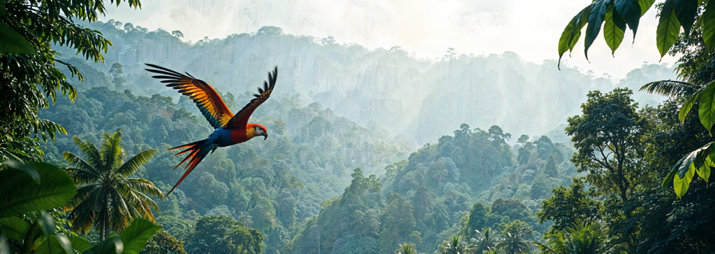 - Food sources are abundant, drawing macaws into visible forest canopies