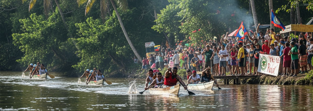 As the canoe race moves through communities, each town celebrates with music, food stalls, and local entertainment.